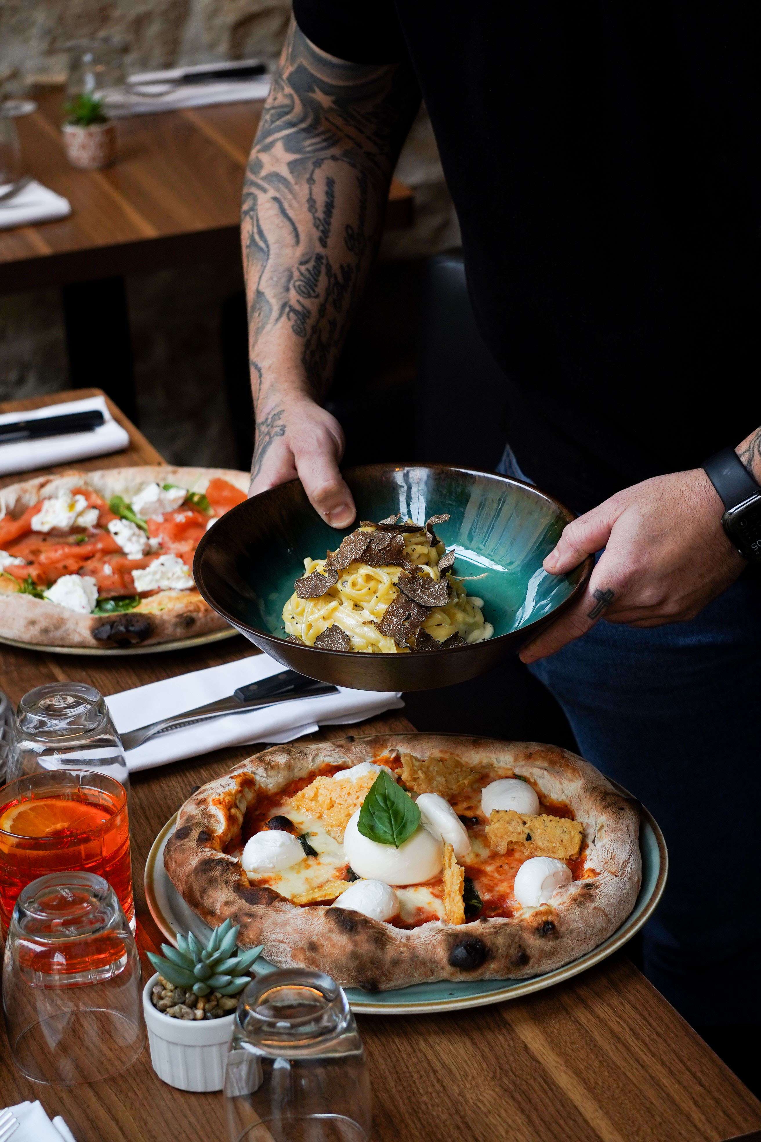 pizzas artisanales, pâtes fraîches maison, risottos, lasagnes,milanese, charcuterie fine italienne,